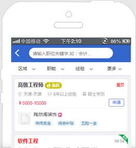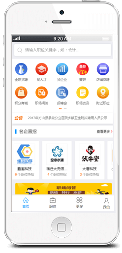 無需下載,沒有平臺、機(jī)型的限制,有觸屏手機(jī)就能上網(wǎng)找工作!機(jī)會不再稍縱即逝,它已在你輕盈的指尖上!